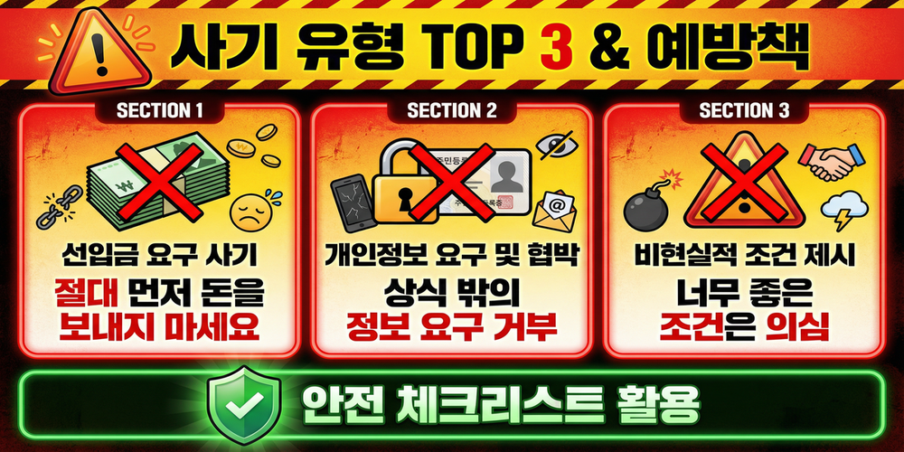 가장 흔한 사기 유형 TOP 3와 예방책 (선입금, 개인정보 요구