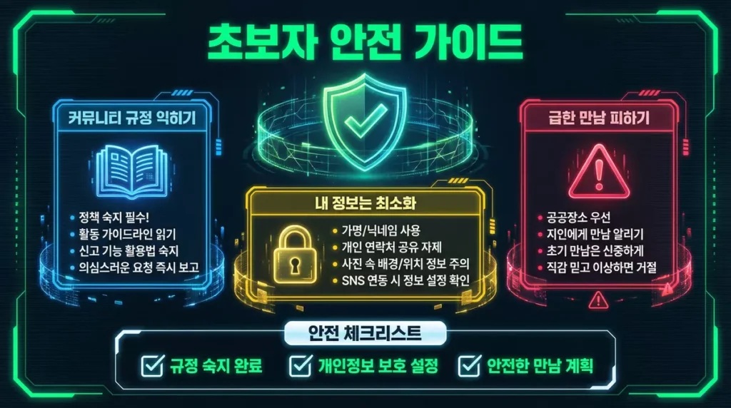 대밤은 유익한 정보를 주지만, 온라인의 익명성 뒤에 항상 위험이 숨어 있습니다. 특히 처음이라면 더 조심스럽게 다뤄야 하죠. 안전 활용을 위한 기본 가이드를 알려드릴게요.