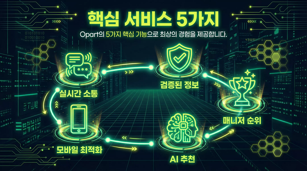 이 오피사이트가 특별한 이유는 바로 다른 곳에서는 찾아볼 수 없는 강력한 핵심 서비스들 덕분입니다. 특히 2025년 11월 리뉴얼을 통해 더욱 강력해진 5가지 핵심 서비스를 소개합니다.