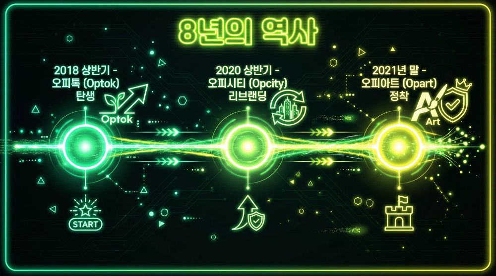 그리고 2021년 말, 두 번째 리브랜딩을 통해 마침내 지금의 ‘오피아트(Opart)’라는 이름으로 정착했습니다. 기존의 오피톡, 오피시티 이름은 더 이상 사용하지 않게 되었죠. 2026년 현재